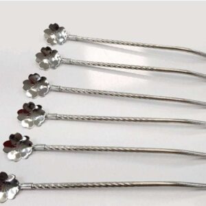 قاشق نی دار مار پیچ طرح گل نقرهای